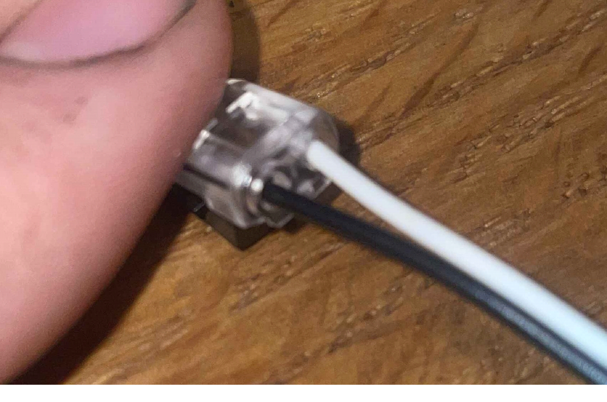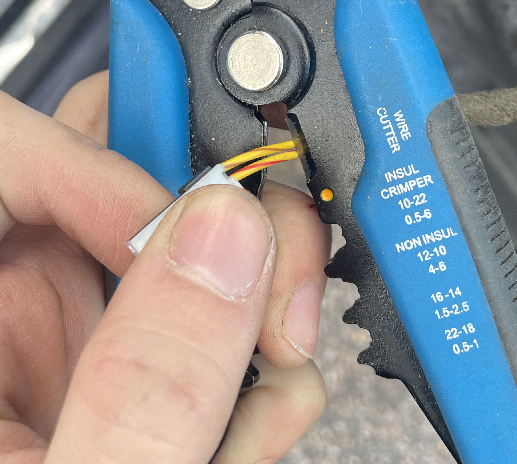 3. Place both new speaker wires through connector holes as seen below and press closed with